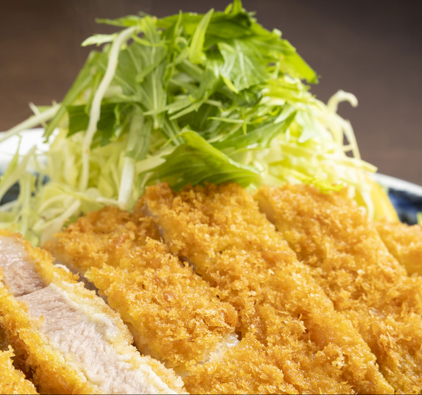数々の豚肉を扱ってきたマスターに、常陸の輝きの魅力を伺うと「とっても美味しい豚肉ですよ。とにかく脂の質が違います!」と太鼓判を捺します。そんな常陸の輝きを使ったロースかつは、まずはシンプルに塩で味わってみてください。とんでは下味をつけずに植物性オイルであっさりと揚げているので、常陸の輝き本来の味わいをダイレクトに感じることが出来ます。常陸の輝き特有の上質な脂は口当たりも良く、さっぱりとした後味で食後の余韻まで幸せになれること間違いなしです。