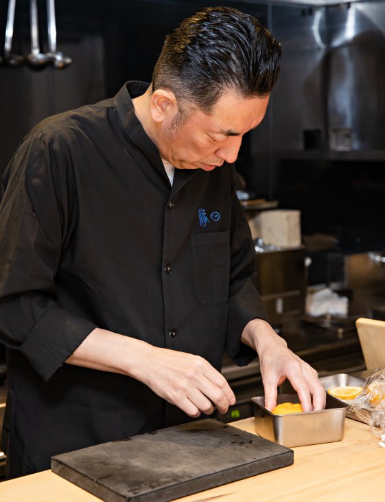高校卒業後、すぐ料理人の道を目指したという佐藤さん。箱根の「強羅花壇」にて日本料理の修業を始め、都内の日本料理店、寿司店などで腕を磨いた後、2006年、恵比寿に「日本料理 雄」を開業。15年間 雄を営み、2021年4月に「縁日」をオープンしました。「15年間恵比寿でやってきて、気分を変えたいな、と感じていた時にコロナもあって。白金高輪は散歩でよく来ていて、いい街だなと思っていたので、心機一転、店名も『縁日』に変えて移転しました」と佐藤さん。 縁日は完全予約制。日本全国の厳選した食材を使った“他では味わえない組み合わせの料理”を、それぞれ品数が変わる「おまかせコース」や「河豚コース」などで提供しています。 『個室が欲しい』というお客様の要望で、カウンターの4席以外は全席(3部屋)個室を設えました。照明も、料理が美しく見えるような位置や明るさ・色合いなどにこだわったそうです。