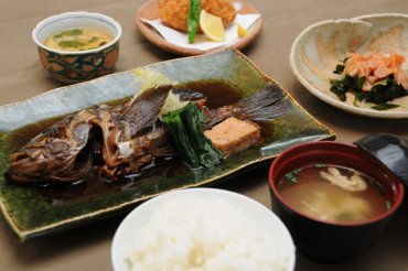 料理長から、取材当日のおススメ料理だとうかがい、黒メバル定食をいただきました。 茨城県の近海で採れた黒メバルをまるごと一匹煮付けにした贅沢なお料理です。黒メバルの煮付けは、身の歯ごたえががプリプリで、身からにじみ出るようなメバルの旨味と出汁の甘味がたまらない逸品でした。