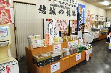 結城つむぎセンターは、ユネスコ重要無形文化財に登録されている「本場結城紬」をはじめとする結城の伝統工芸品や特産品を品数豊富に揃え、お求めやすい価格で販売している、日本ドライブイン協会推奨の旅の駅です。店内にはレストランが併設されており、結城地域の特産品と、茨城県の銘柄豚ローズポークをいただくことができます。