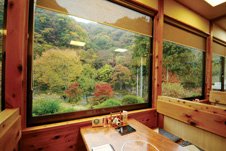 「和風レストラン 七曲り」は、お店から見える久慈川の渓谷の断崖につくられた、曲がりくねった道の名前である”七曲り”から命名された、絶景と奥久慈しゃも料理が自慢のレストラン。 店内の大きなガラス窓からは、四季折々様々な姿を見せる奥久慈の自然を堪能することができます。久慈川の流れが美しく、冬季には、大変珍しいシガ(※)を見ることもできます。 お店を出ると、下に降りて川岸まで歩いて行くことができ、シーズンには、釣り人が集まるスポットでもあります。 ※シガとは、氷の小片が無数に生じ音を立てて川面を流れる非常に珍しい自然現象の一つで、流氷の一種です。シガは、水面にはった氷が割れて流れているのではなく、水中もしくは川床でできた「氷の粒(切片氷)」が水面に浮き上がって流れています。いくつもの条件が重なり初めて鑑賞できる厳冬期ならではの自然の芸術です。