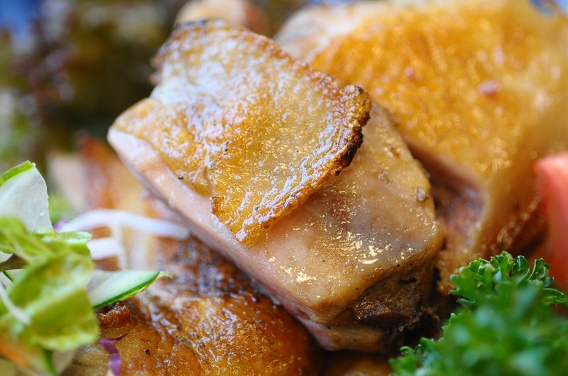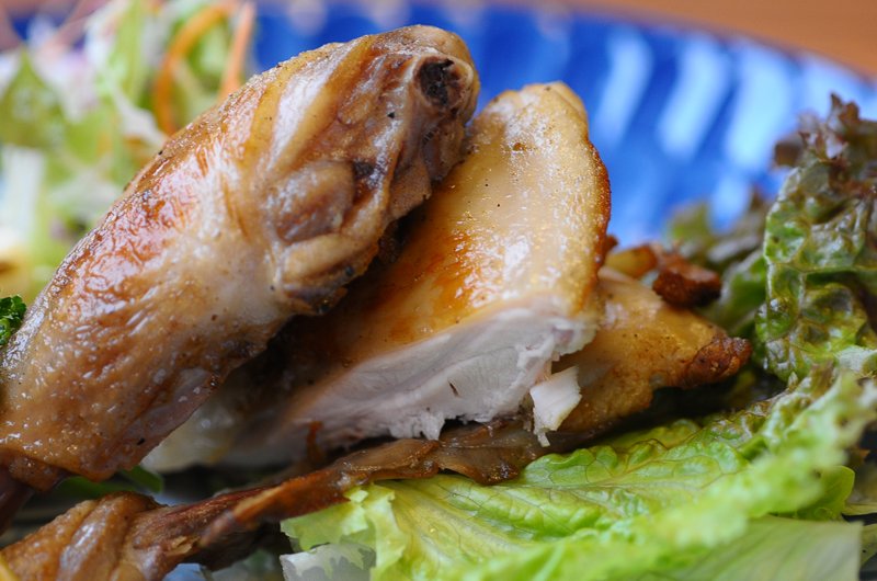 「和風レストラン 七曲り」の一押しメニューは、奥久慈しゃもの焙り焼き。フランスのジビエ料理にヒントを得て、低温の油で長時間かけて煮込んだ後、焙った奥久慈しゃもは、ジューシーに仕上げられており、奥久慈しゃもを味わうには最高の一品です。 一人前で、かなりボリュームがあります。おにぎりセットと一緒に注文して、豪快に食べるのがおすすめです!