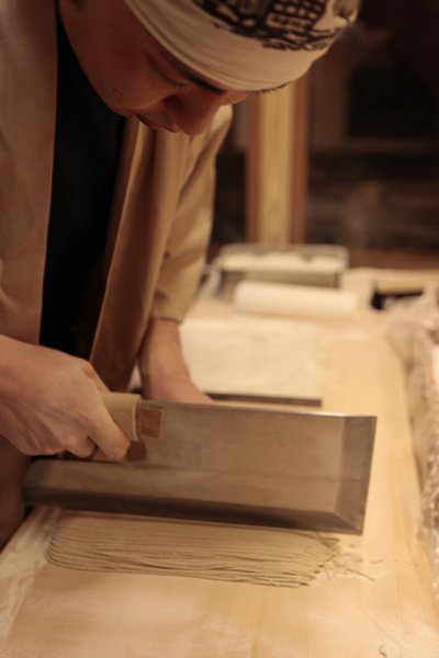 うまい酒造りにはかかせない"おいしい水"。木内酒造の敷地内には、蛇口をひねれば酒蔵と同じ清らかな水が出てくるため、【蔵+蕎麦 な嘉屋】では、すべての料理の全行程でこの水が使用されています。 毎日数量限定になりますが、酒だけで打った「酒蕎麦」酒蔵ならではの人気メニューです。 香り高い常陸秋そばを打つ際に、味わい深い純米酒を加えることで奥深い味わいが生まれています。 「蔵+蕎麦 な嘉屋」の外一(そば粉十に対してつなぎ一)で手打ちした蕎麦は細く、のどごしがよいのが特徴です。