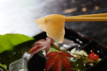 期待を膨らませながらメニューを見ると、大子ならではの「さしみこんにゃく」の文字に心を動かされ、まずはさしみこんにゃくをオーダー。こんにゃくの刺身…想像したのはいつも食べる味噌田楽の食感でした。 運ばれてきたお皿の中には、まるで活魚の刺盛のように様々なこんにゃくが盛りつけられています。緑は青海苔こんにゃく、ピンクはトマトこんにゃく、黒は竹炭こんにゃくとのこと。 御箸で持った瞬間、想像以上に柔らかくてびっくり。プルプルした食感にも驚きました。こんにゃくごとに、それぞれ食感に違いがあり楽しめる一皿です。 小林さんに聞くと、地元の農家と契約して作っている手作りこんにゃくだということがわかりました。お店の外で売られているこんにゃくは、お持ち帰り必須です。
