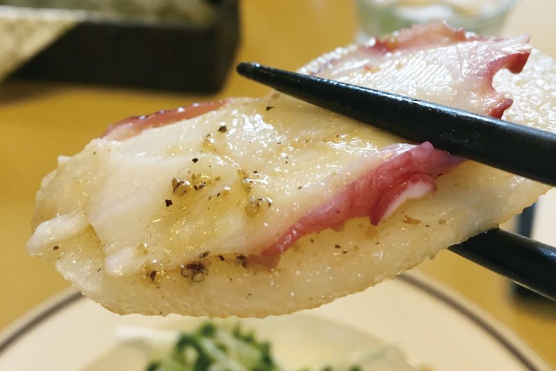 オススメは、期間限定の「梨とタコのカルパッチョ」。店主が目利きして仕入れた茨城県産の梨をスライスし、壺漁で獲れた新鮮なタコと合わせた前菜です。 梨は大ぶりにカットされており、シャキシャキ感はそのまま。梨とタコを一緒に食べると、梨からあふれ出る果汁と、肉厚でやわらかな食感のタコの旨味が相まって、口の中にじゅわわ~っと幸せが広がるおいしさです。ピリリと黒コショウの効いた自家製ドレッシングが味をまとめています。 「梨とタコのカルパッチョ」は、単品でも(¥800)、コースの前菜としても(¥1,980~)食べることができます。梨の旬である9月30日までの期間限定で提供中です。お近くにお越しの際は、ぜひお立ち寄りください!