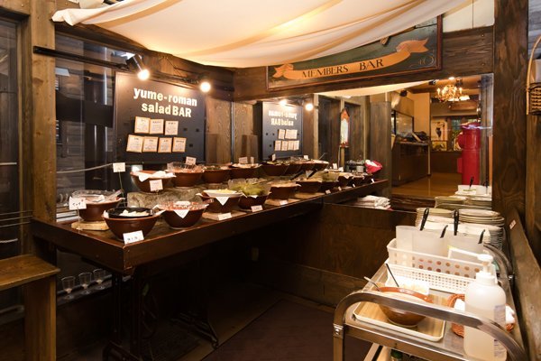 水戸市「赤塚駅」のほど近くにある、「お肉のおいしいレストラン 夢浪漫」は、「肉」にこだわった数々の料理が自慢のレストランです。 ログハウス調の外観で、正面には大きなシェフの看板が、どどんと付いています。 店内は、レトロな雑貨が散りばめられた、アンティーク調の落ち着いた空間で、古いミシンを使って作られたテーブルなどもあります。 スタッフのアイディアではじまったという新鮮野菜の「サラダバー」も人気です。