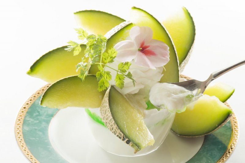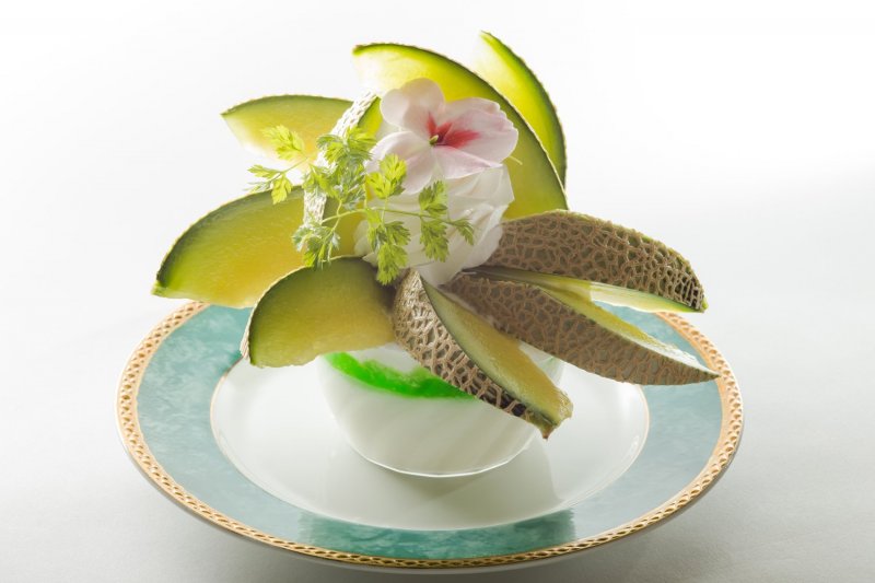 夢浪漫では、その季節の旬のフルーツを使った自家製デザート「フラワーシリーズ」を提供しています。 フラワーシリーズは、素材を「花」に見立てた、見た目にも華やかなデザート。季節ごとに「イチゴフラワー」、「ぶどうフラワー」などがあり、今回ご紹介するのは、5月~6月の期間限定提供となる「メロンフラワー(880円)」です。 「メロンフラワー」は、花に見立てたカットメロンが美しく盛られており、その下には生クリームと自家製メロンの果肉入りソース、さらにその下にはパンナコッタが入っています。「お肉を食べたあとのデザート」を意識して作られたというだけあって、全体的に甘さは控えめ。メロンの甘さとパンナコッタのすっきり感の相性が絶妙です。 「メロンフラワー」などのフラワーシリーズは、「アニバーサリーコース」にプラス200円で、自家製デザートから変更できるので、記念日の食事の最後に華を添えるデザートとしても人気です。 「メロンフラワー」の提供は、2018年6月30日までです!記念日のデザートに、いかがでしょうか?