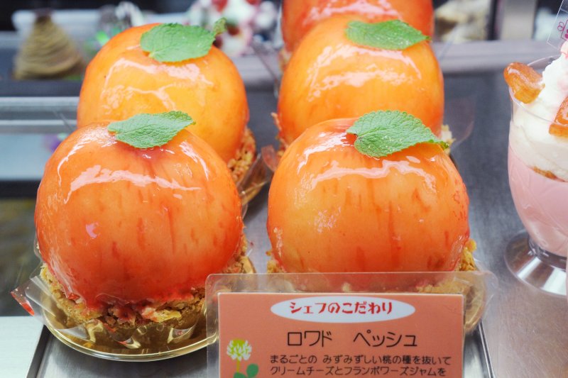 ショーケースには、果樹園が多い地の利を活かし、旬のフルーツをたっぷりと使ったケーキを中心に、定番の人気商品ジャージー牛乳を使った「プレミアムプリン」、ベルギー産クーベルチュールチョコレートを練りこんだ濃厚な「濃厚焼きチョコ」、スフレタイプのチーズケーキ「おやつちーず」などが並びます。地元・稲吉産の餅粉を使ったもちもち生地の「いなよしロール」もおすすめです。