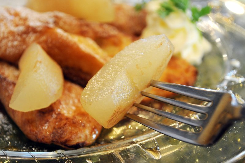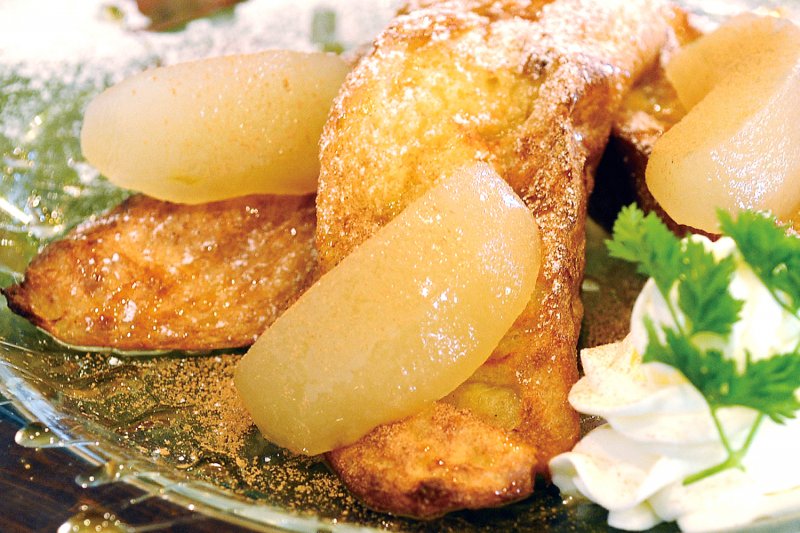 アオイオトのフレンチトーストへのこだわりは、並々ならぬものがあります。 季節に応じて旬の果物を使ったフレンチトーストがありますが、今年は「いばらきの秋梨おもてなしフェア2020」の参加店として、9月30日まで(※)の期間限定で、『梨のコンポートのせフレンチトースト』を提供しています。 フレンチトーストは、市内のパン屋さんから届いたバゲットを、たまご・牛乳・バニラビーンズの液につけたものを、なんと“真空”にして2日間寝かせたのちに、じっくりとオーブンで焼き上げています。 ぎゅっと詰まった重厚感のある食感で、濃厚な味わいのフレンチトーストと、食感を少し残した梨の酸味とシナモンがほんのり香る梨のコンポートは、一緒にいただくと絶品!添えられた梨をコンポートしたシロップをかけると、さらに風味が増しておいしい~♪ ※期間前に終了する可能性があります。