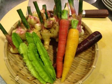 お米は【茨城県環境保全型農業推進コンクール】で優秀賞を受賞した経歴のある「ななかいの里コシヒカリ」、豚肉は「美明豚」、牛肉は「常陸牛」を使うなど、徹底した地産地消を掲げています。 また、料理長主催で様々なイベントも開催しており、なかでも、農家さんが通常破棄してしまうような特徴的な形をした野菜を、花や動物の形に彫る『野菜の彫り物教室』は大好評。2カ月に1度は開催しているそうです。