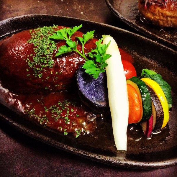 一番人気の自家製ハンバーグは、茨城の銘柄牛「常陸牛」と国産牛、国産豚肉を使った手ごねスタイルで、ジューシーで濃厚な味わいがたまりません。 ソースは、デミグラス、チェダーチーズ、ジンジャー、チリ、トマト、更に和風おろしやデミ&チーズ、ブラックペッパーなど10種類近くが用意されており、お好みのソースに絡めて召し上がれば、ハンバーグの旨味がより一層アップします。 また、代わり種メニューとして人気なのが、自家製のガラムマサラで仕上げた「ラムシチュー」。さらっとしたシチューは香り高く、やわらかく煮込んだラムとの相性は抜群です。