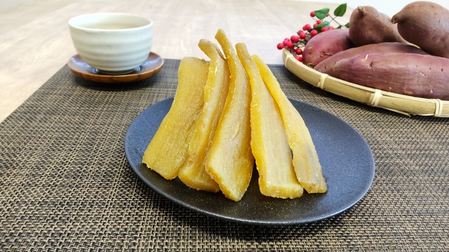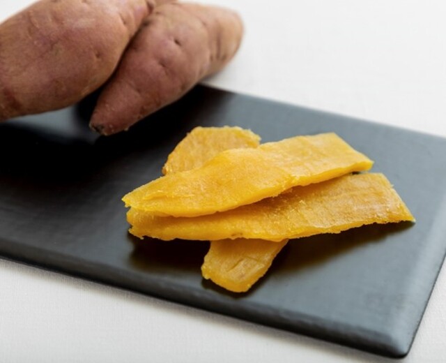 蒸して乾燥しただけの干しいもは、原料となるさつまいもの品質が干しいもの味を大きく左右させるため、植付から掘り取りまでの栽培過程や、貯蔵工程に原料芋の糖化を促し、より美味しい干し芋が出来るよう力を入れております。また干し芋製造のほとんどが手作業によるため、一枚一枚丁寧に仕上げています。砂糖などの添加物を一切使用しておらず、食物繊維が豊富で、腸活にも美容にも最適です。お子様からお年寄り、筋トレをしている方にも、脂質が少なく、炭水化物を含んでいるので、おやつやエネルギー補給に手軽に食べることが出来ます。