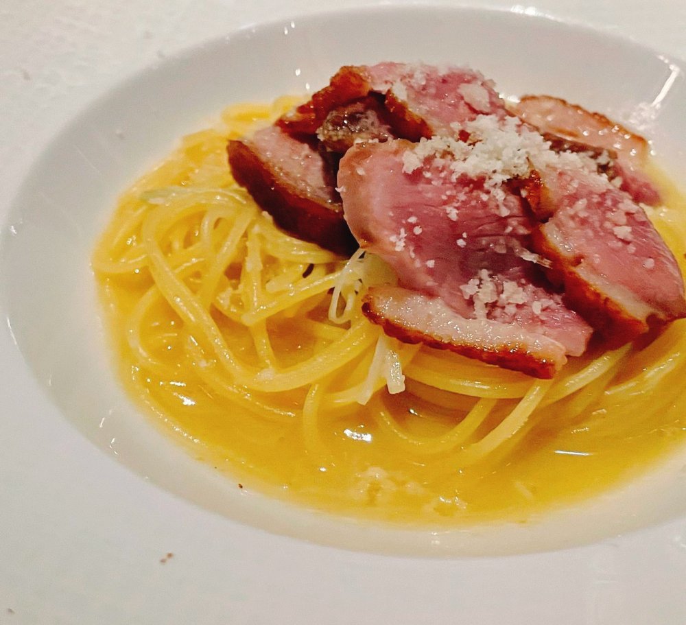 茨城ブランドの「奥久慈卵」とホワイトアスパラを使ったお料理は、ホワイトアスパラの甘味を最大限に引き出す為に油で素早く揚げ、旨味をギュッと封じ込めています。卵とホワイトアスパラの組み合わせはイタリアではおなじみのお料理でありながら、素材の鮮度により美味しさが左右されてしまう一品です。リッチなリコッタチーズを包んだレタスと一緒にいただく事で、絶妙な味わいと触感のハーモニーをお楽しみいただけます。