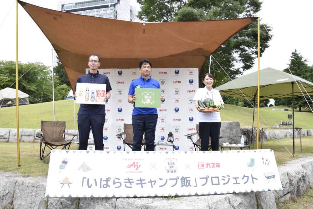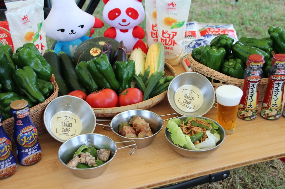 海・山・川・湖のアウトドアフィールドに恵まれ、食材の宝庫である本県では、この度、旬な食材を活用した「キャンプ飯」のメニュー開発を味の素株式会社と行い、その食材調達における売場展開を株式会社カスミと連携することにより、キャンプにおける県産品の消費拡大といばらきキャンプの魅力の発信に取り組んでいくこととしました。
