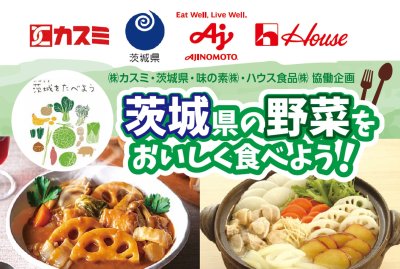 包括連携協定を結んでいる茨城県とカスミに、ハウス食品㈱と味の素㈱が加わった協働企画!