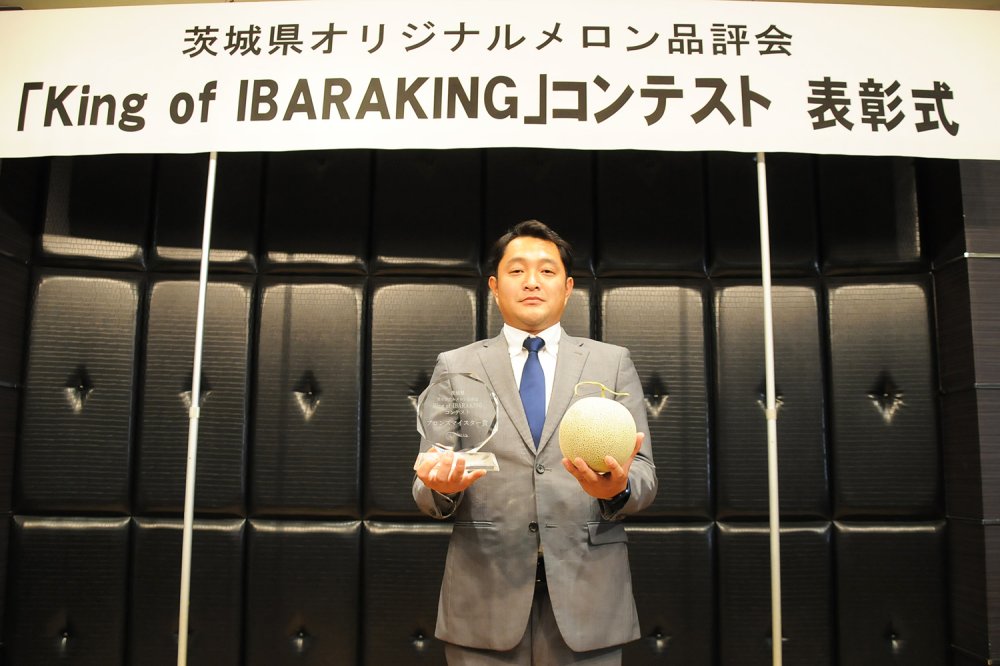 「King of IBARAKING」コンテストでブロンズマイスター賞を受賞した茨城町の柳洸太さん(JA水戸 茨城町メロン部会)のイバラキング