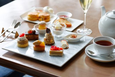 ロッシニテラスでは、平日夜の時間帯にもアフタヌーンティーをお楽しみいただけます。グラスシャンパンとあわせて、贅沢なひとときをお過ごしください。