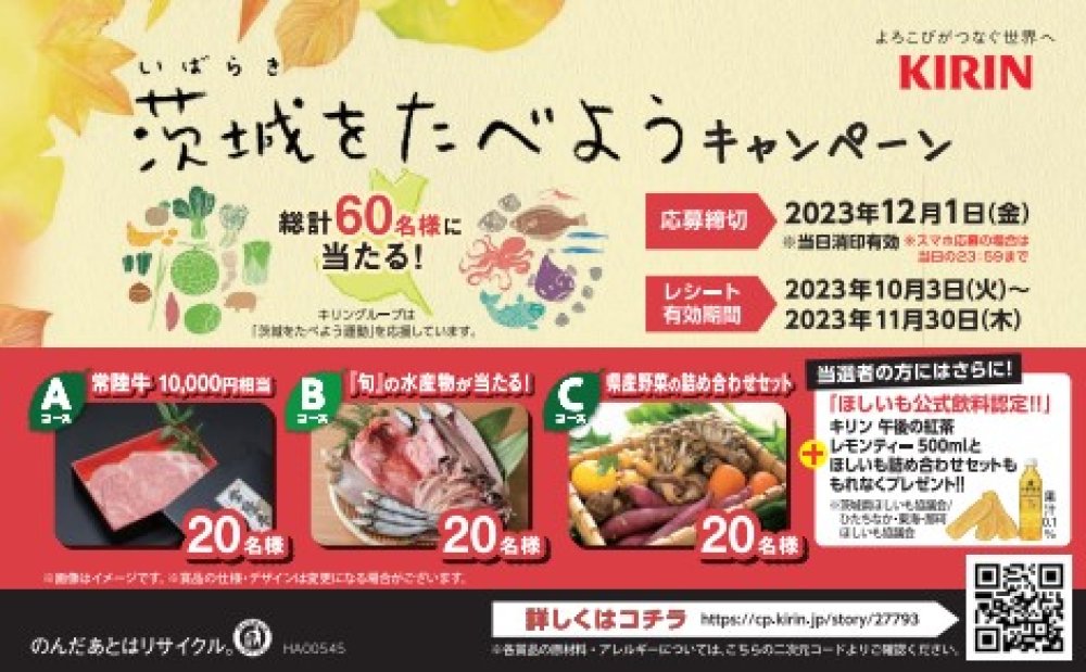 【10/3(火)~11/30(木)】「キリンビバレッジ 茨城をたべようキャンペーン」開催中!(2023/10/11)