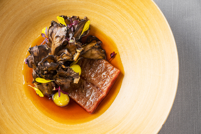 ◆常陸牛ミスジと舞茸の炭火焼ダブルコンソメとともに