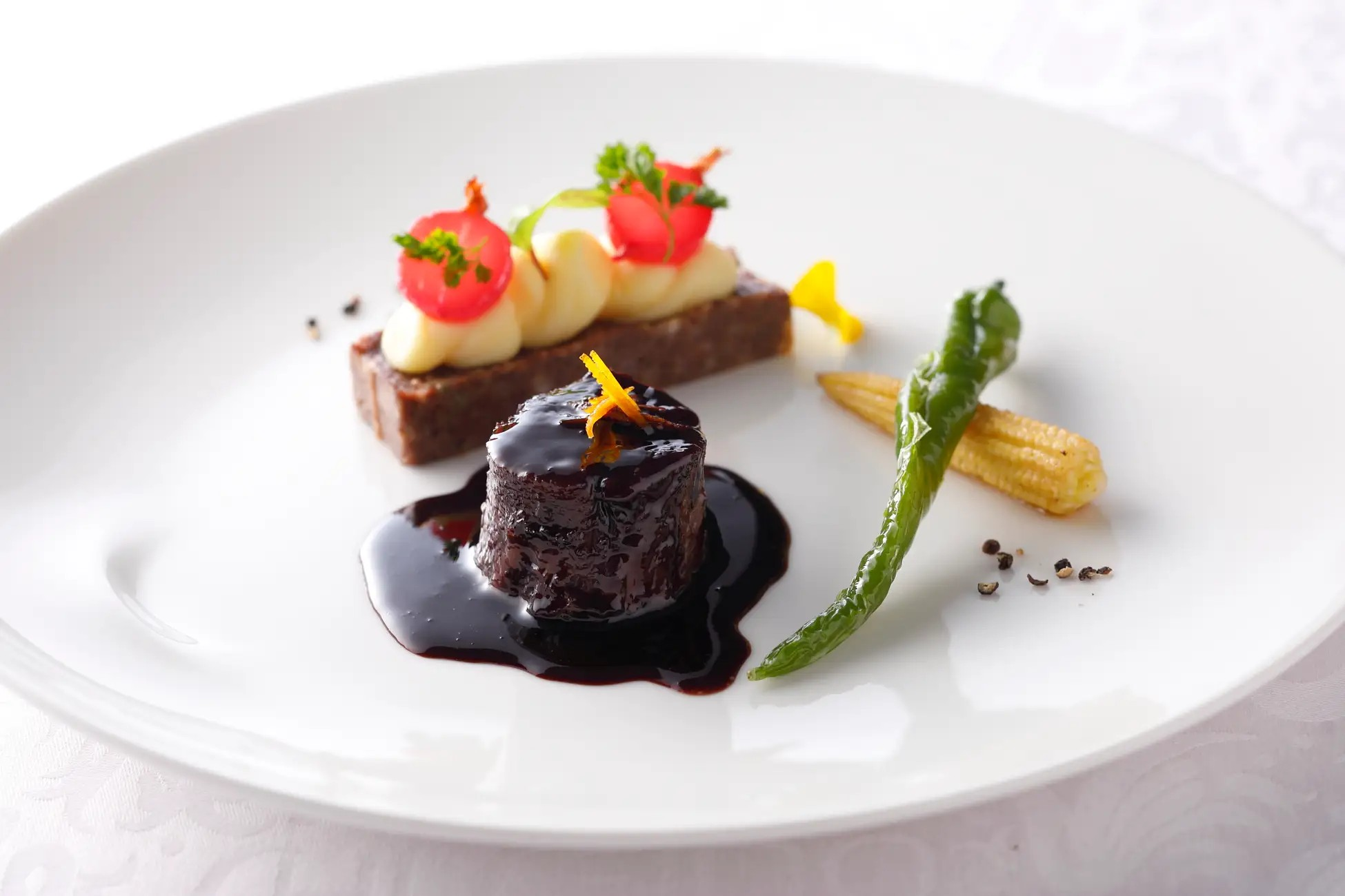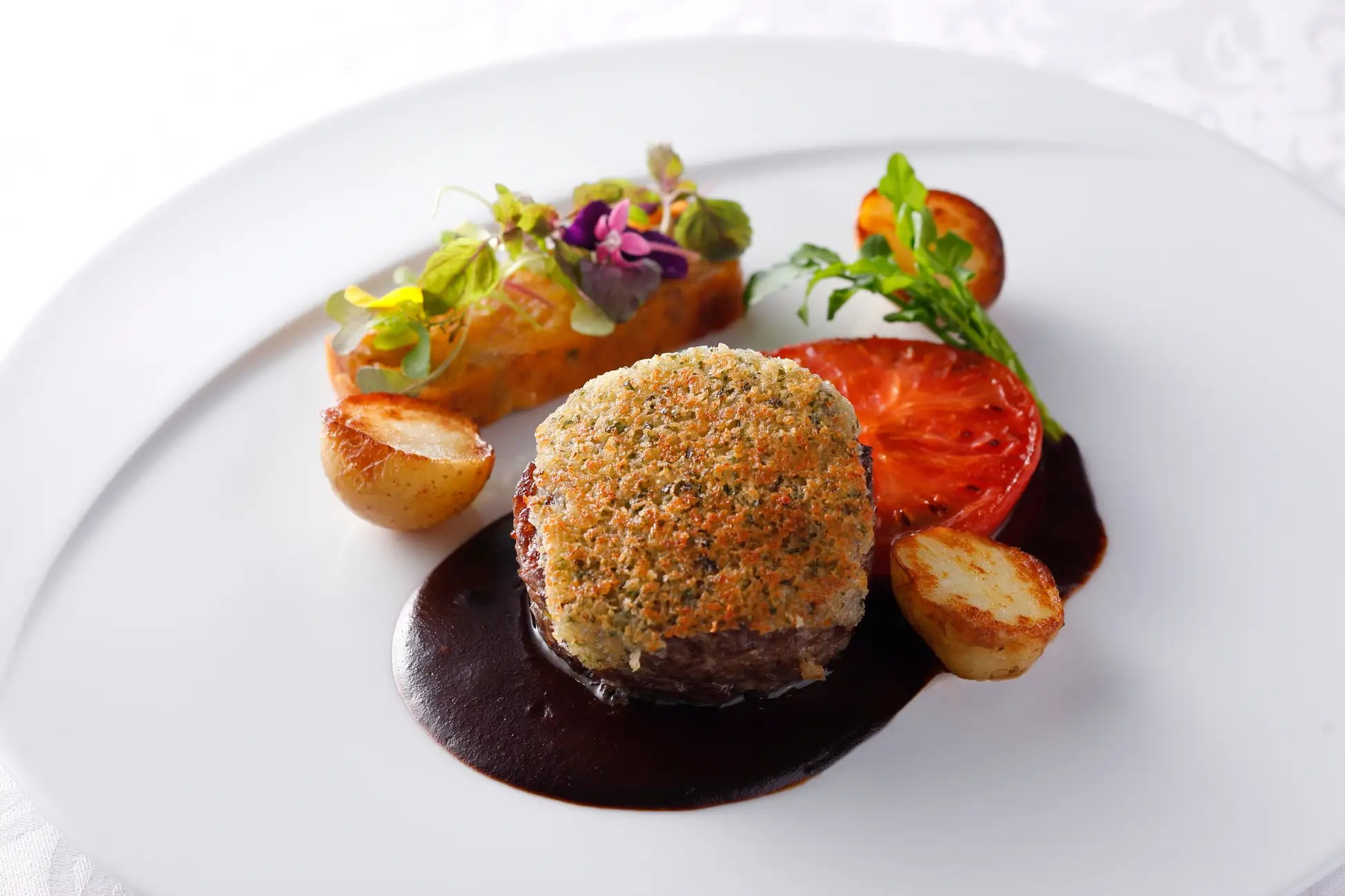 赤ワインでじっくり煮込んだ和牛ほほ肉を赤ワインソース&タルタルで仕上げました。