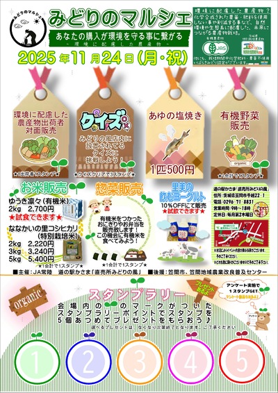 11月24日(月・祝日)道の駅かさま「直売所みどりの風」 みどりのマルシェ開催!(2025/10/30)