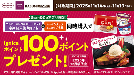 11月13日の「茨城県民の日」に合わせて、11月14日(金)~11月19日(水)の期間中、カスミ各店舗にて「カルビーかいつか」と「ハーゲンダッツ ジャパン㈱」によるタイアップ企画を実施します🍠✨