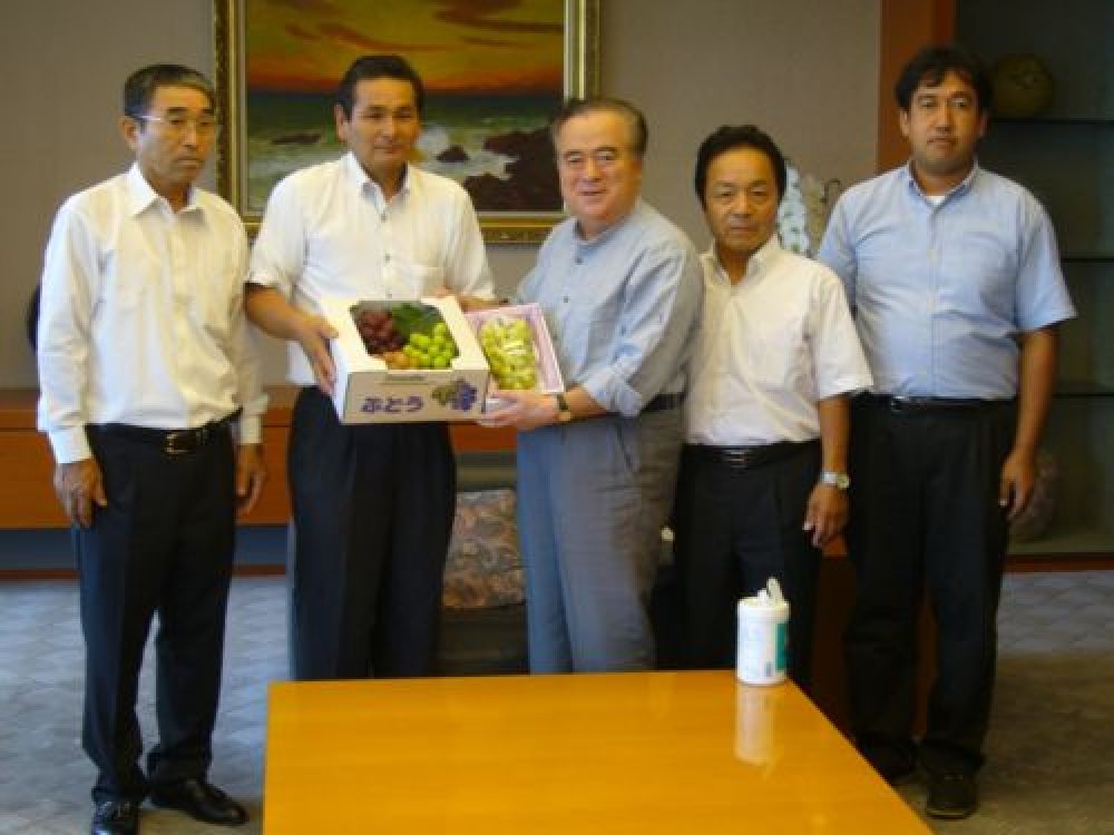 EVENT / 旬のうまいもの特集 新着・イベント情報 茨城県ぶどう連合会が「茨城のぶどう」を県庁でPR(2010/09/03) 8月25日(水曜日)、茨城県ぶどう連合会の深谷会長を始めとする役員4名が県庁を訪れ、これから収穫のピークを迎える「茨城のぶどう」を橋本知事にPRしました。 茨城県のぶどう栽培面積は、278haと全国的には21位ですが、大粒で甘い「巨峰」から、皮ごと食べられ食味の良い「シャインマスカット」に代表される欧州系ぶどうまで、さまざまな品種が県内各地で栽培されています。 今年も甘く美味しいぶどうに仕上がりました。 今、旬を迎えている「茨城のぶどう」をぜひご賞味ください。 【お問い合せ先】 笠間地域農業改良普及センター(茨城県ぶどう連合会窓口) 電話:0296-72-0701 今、おすすめの記事 {{row.type_jp}} {{row.title}}