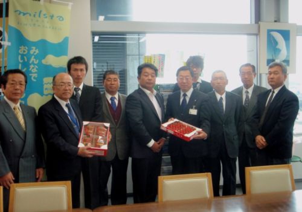 12月14日(火曜日),いちご生産者グループ「拓実(たくみ)の会」浜野会長ほか関係者の皆さんが県庁を訪れ,