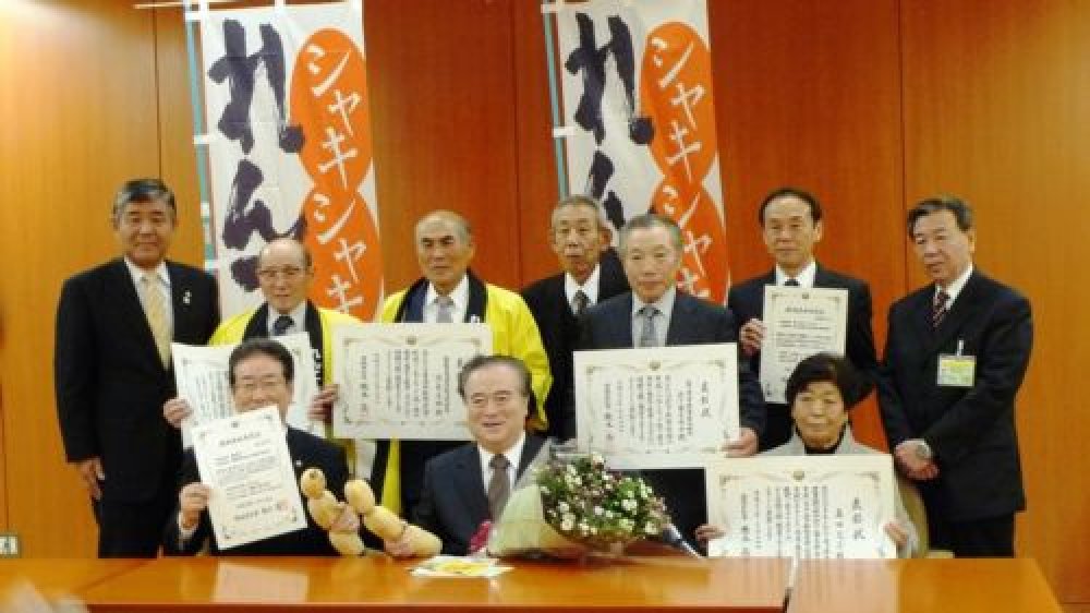 伊宝花き園芸部会長ら27名の皆さんが県庁を訪れ,橋本知事から平成22年度銘柄産地指定証ち功労者表彰