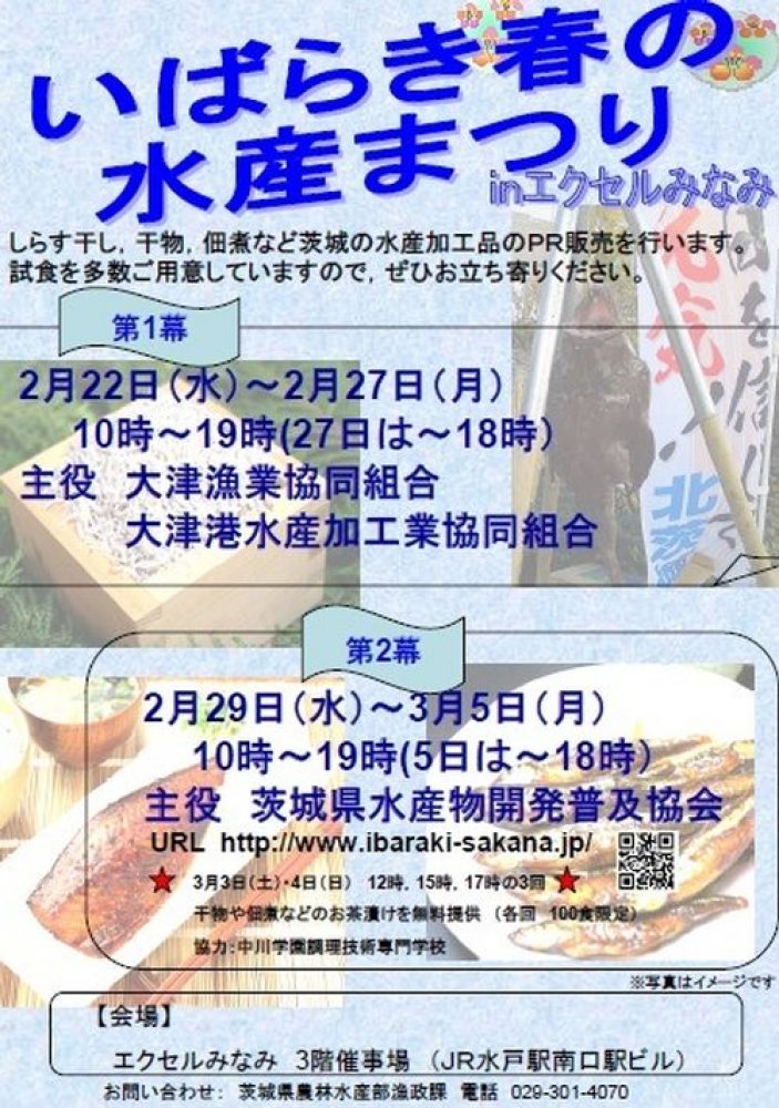 いばらきのしらす干し,干物,佃煮など自慢の水産加工品を皆様にお届けするイベント「いばらき春の水産まつり」を下記のとおり実施します。