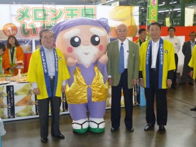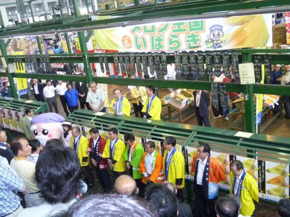 今回は、茨城県農業協同組合中央会の加倉井豊邦会長をはじめ、県内メロンの産地のJA代表理事組合長らも参加し、市場流通関係者に対して、生産量全国一を誇るメロンを中心とした本県の優れた青果物をPRしました。