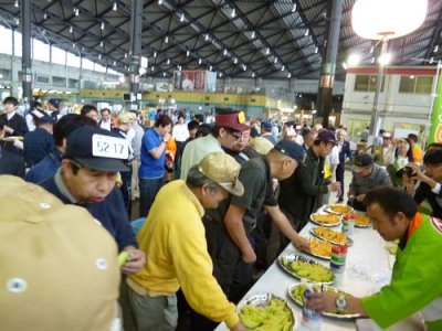 トップセールスに来場した約300名の市場関係者は、本県産青果物の安全性をPRするチラシを次々と受け取り、旬を迎えた本県産メロンを試食し、「非常に美味しい」とコメントしていました。