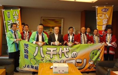 EVENT / 旬のうまいもの特集 新着・イベント情報 八千代町,JA常総ひかりが県庁で「タカミメロン」をPR(2012/06/15) 6月13日(水曜日),八千代町の大久保町長,JA常総ひかりの猪瀬代表理事組合長,JA常総ひかり八千代地区メロン部会の岡本部会長ほか計10名が県庁を訪れ,旬を迎える「タカミメロン」をPRしました。 八千代町ではクインシーメロン,キンショーメロンなど,様々な品種のメロンが作られています。そのなかでも産地を代表するタカミメロンは,ボリューム感のある果肉と,ジューシーな味わいが特徴です。 糖度が高く甘くて美味しい,八千代町の「タカミメロン」を是非ご賞味ください。 【JA常総ひかり八千代地区の「タカミメロン」に関するお問合せ先】「旬彩・やちよ」農産物八千代直売所電話:0296-30-3011 今、おすすめの記事 {{row.type_jp}} {{row.title}}