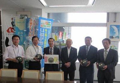 5月27日(月)、JA稲敷の篠田代表理事組合長、江戸崎南瓜部会の中村部会長ほか計5名のみなさんが県庁を訪れ,出荷を迎えた「江戸崎かぼちゃ」をPRしました。