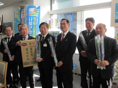 磯辺代表理事組合長ほか関係者の皆さんが県庁を訪れ「にら」をPRしました。