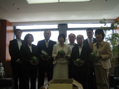 EVENT / 旬のうまいもの特集 新着・イベント情報 筑西市・JA北つくばが県庁で「こだますいか」をPR(2014/05/08) 5月2日(金),筑西市の須藤市長とJA北つくばの藤田代表理事組合長, JA北つくばこだま西瓜部会の大久保部会長ほか計19名が県庁を訪れ, これから旬を迎える「こだますいか」をPRしました。 須藤市長から,「出荷開始当初は2月の大雪の影響が見られたが,天候と ともに回復し,例年以上に甘く美味しい「こだますいか」ができた。」との 紹介がありました。 筑西市は全国有数の「こだますいか」の産地で,JA北つくばの「こだます いか」は,県の青果物銘柄産地に指定されています。 これからの暑い時期に,果汁いっぱいで爽やかな味わいの「こだますいか」 を是非ご賞味ください。 今、おすすめの記事 {{row.type_jp}} {{row.title}}