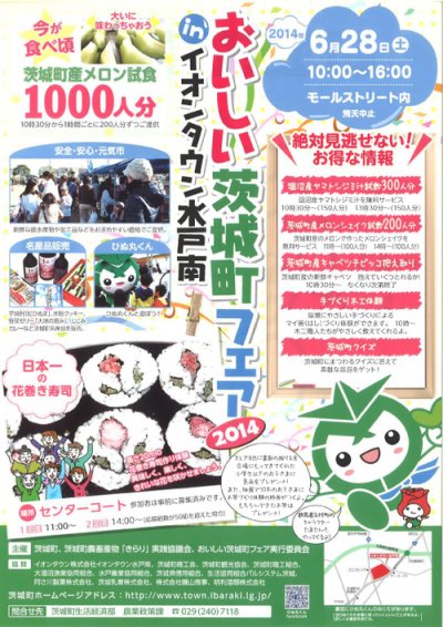 6月28日(土)、イオンタウン水戸南において、「おいしい茨城町フェア2014」を開催します。