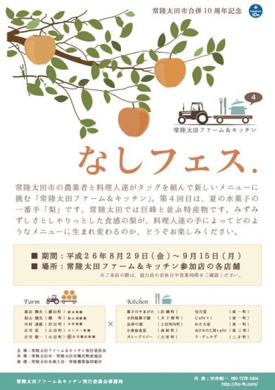 EVENT / 旬のうまいもの特集 新着・イベント情報 常陸太田市で「なしフェス.」開催!(2014/08/27) 8月29日(金)~9月15日(月)の期間中,常陸太田市内にある参加店舗で, 「なしフェス」が開催されます。農業者と料理人がタッグを組んで,梨のPRに挑戦! 旬を迎えた秋梨が,料理人たちの手によってどのように生まれ変わるか,どうぞ お楽しみください。 【詳しくは】→http://ho-fk.com/ 今、おすすめの記事 {{row.type_jp}} {{row.title}}