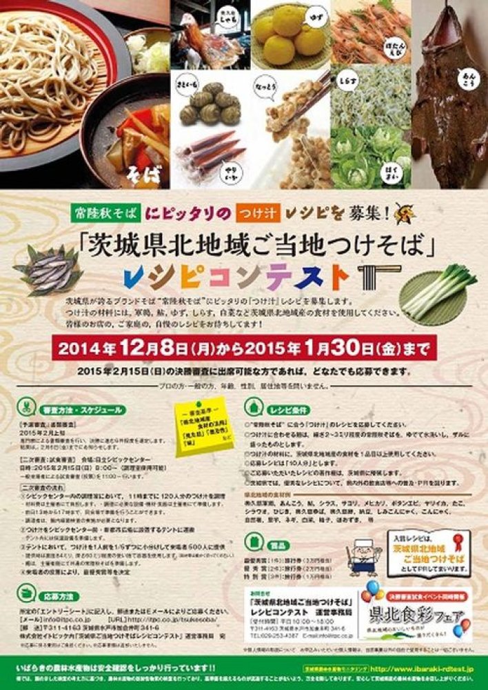 「茨城県北地域ご当地つけそば」レシピコンテスト募集中!(1月30日まで)(2014/12/17)