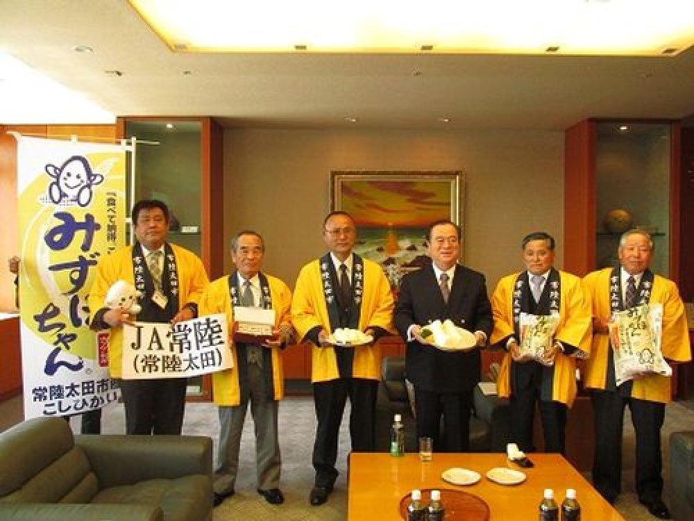 会長,JA常陸の木村代表理事副組合長,常陸太田市の大久保市長ほか計9名