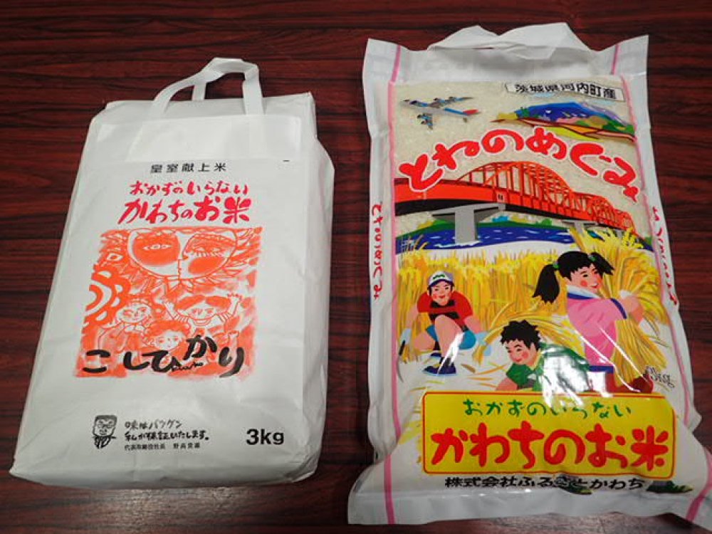 河内町で生産される「おかずのいらないかわちのお米」と「とねのめぐみ」を是非ご賞味下さい。