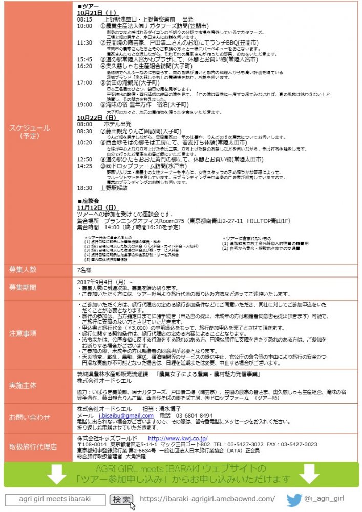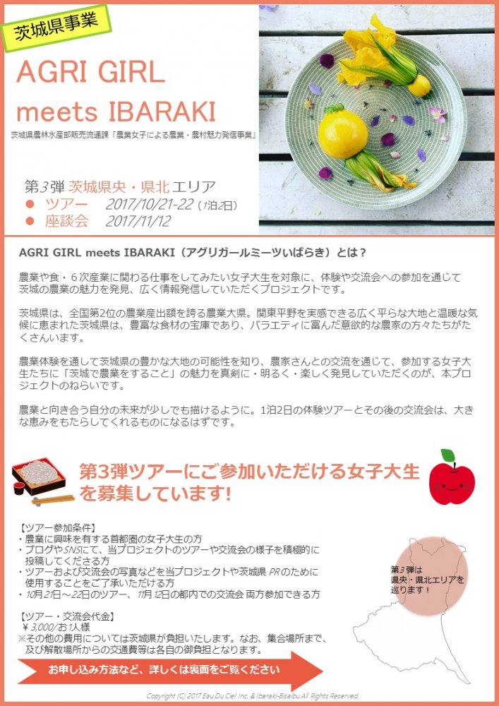 【県事業】AGRI GIRL meets IBARAKI 第3弾ツアー参加者募集中!(2017/09/12)