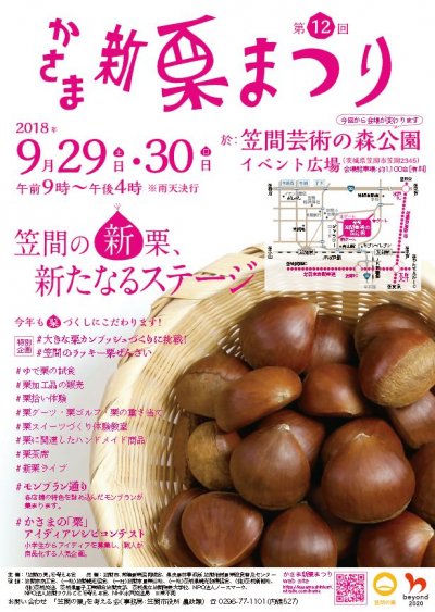 9月29日(土)、30日(日)に、笠間芸術の森公園で「第12回かさま新栗まつり~かさまの新栗、新たなるステージ~」を開催します。