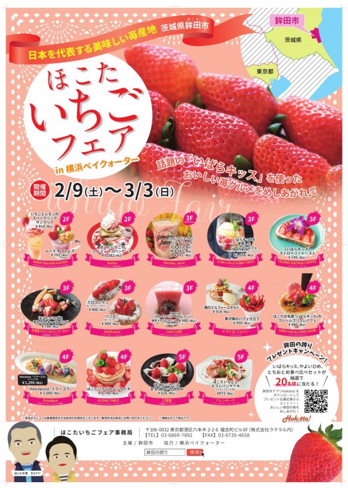茨城県オリジナルブランド品種「いばらキッス」を使ったメニューが楽しめる「ほこたいちごフェア」が横浜ベイクォーターで開催されます!