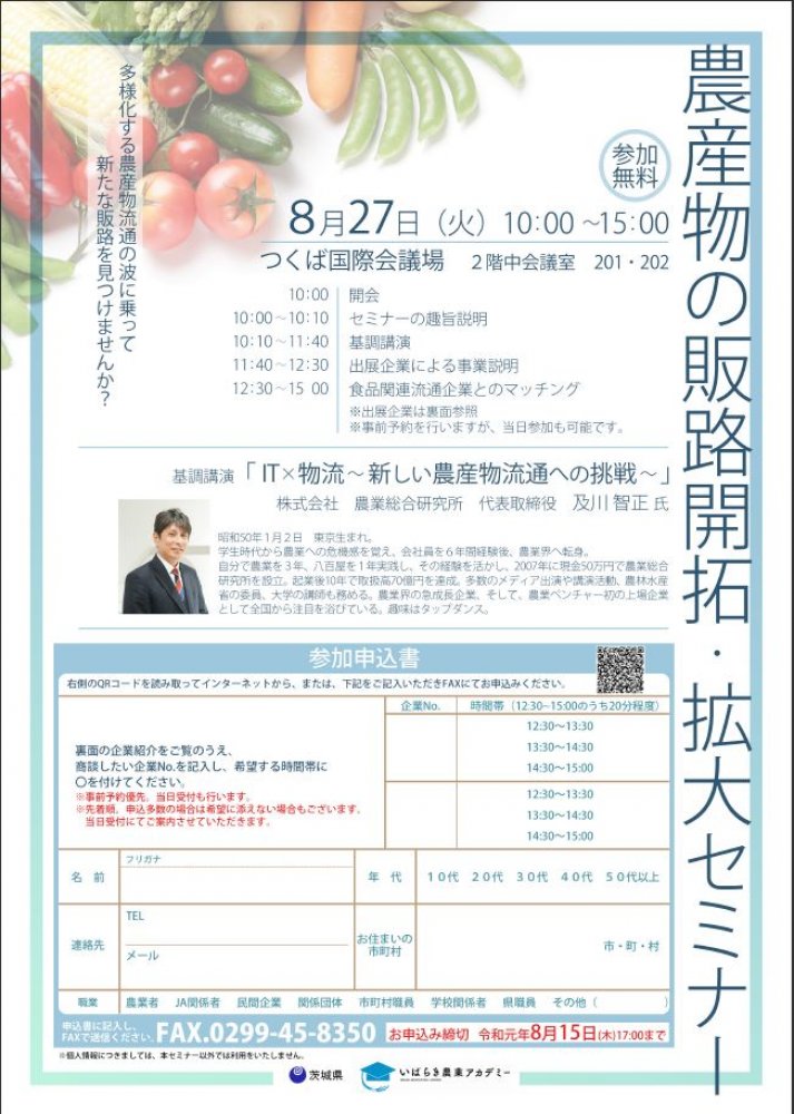 ≪8/15(木)締切≫農産物の販路開拓・拡大セミナー開催!(2019/07/31)