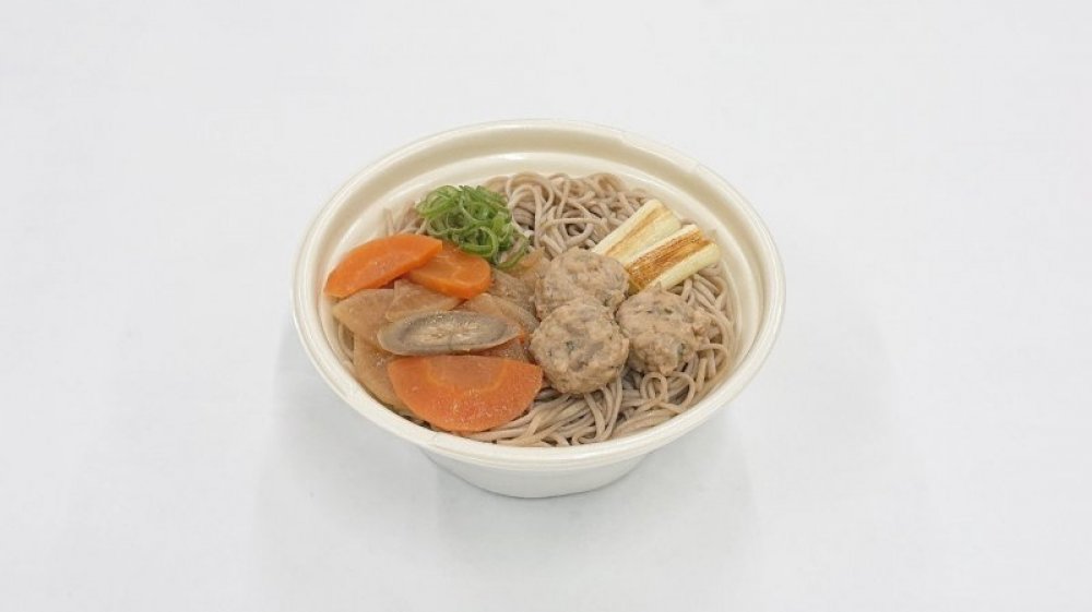 レンジで温めて食べるカップタイプの麺『奥久慈しゃも使用 つみれ蕎麦』が、