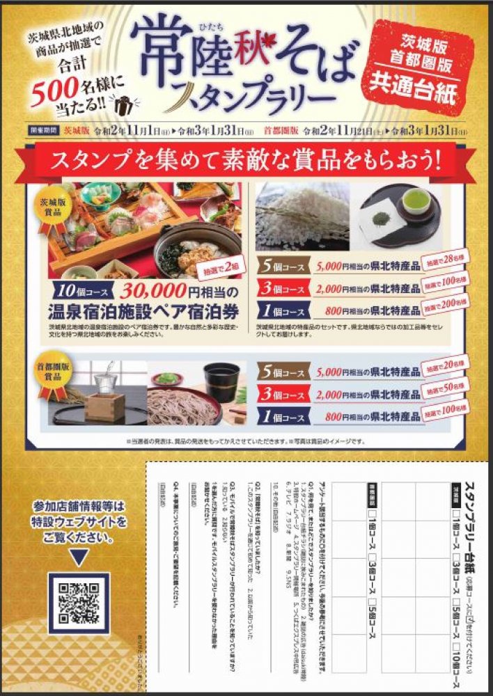 茨城県北地域のスタンプラリー参加店で常陸秋そばを食べ、スタンプを集めて応募すると、