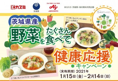 【応募締切2/22(月)】茨城県×カスミ×味の素共同企画「茨城県産野菜をたくさん食べて健康応援キャンペーン」開催中!(2021/01/15)