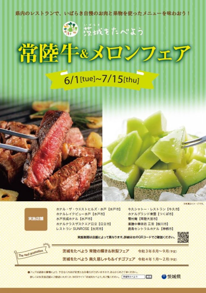 茨城県内のレストラン10店舗で、「茨城をたべよう 常陸牛&メロンフェア」を開催します。
