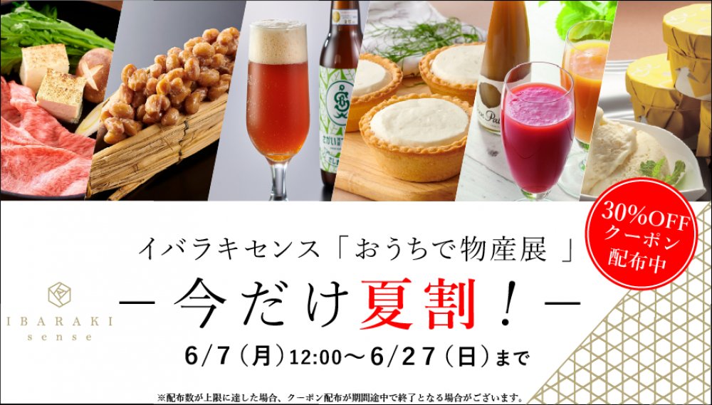 茨城県のアンテナショップ「IBARAKI sense」のオンラインショップにおいて、「イバラキセンス おうちで物産展-今だけ夏割!-」を開催中です。期間中は全品30%の割引を実施します!